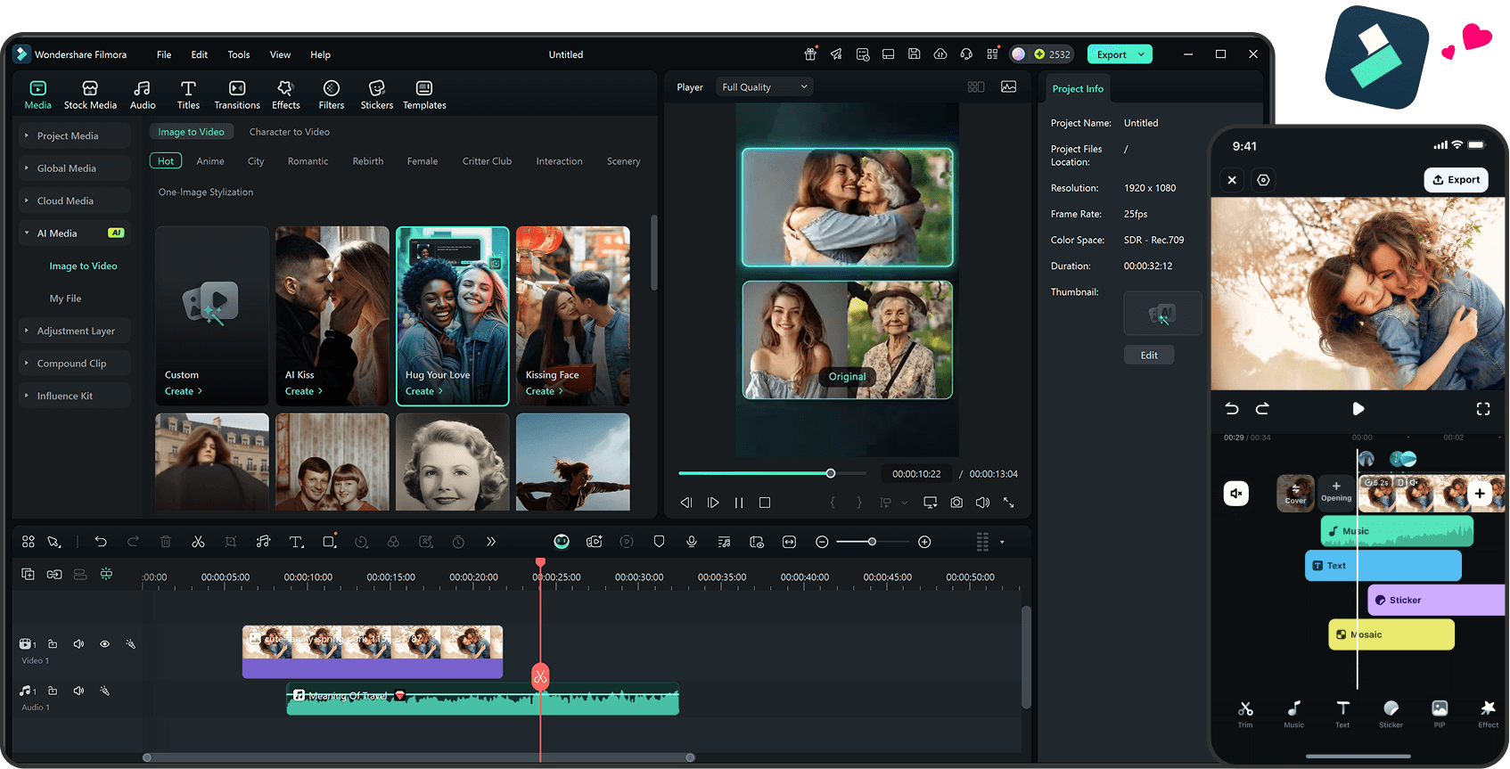 Você pode criar a qualquer hora e em qualquer lugar com IA do Filmora!
